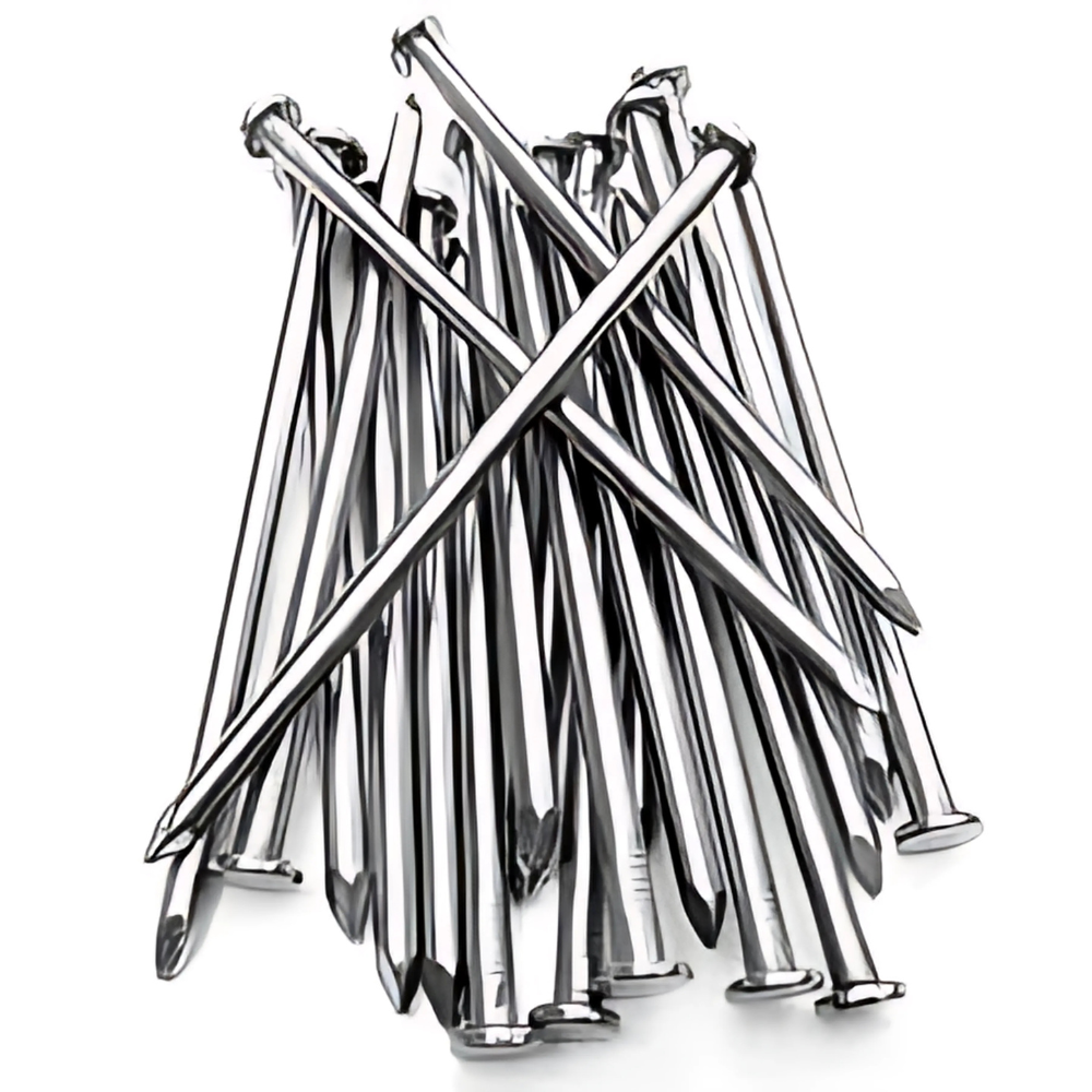 Nails are typically made from high-strength steel, carbon steel, or stainless steel, and can come with different surface finishes such as galvanized (for corrosion resistance), plain (for standard applications), or coated (for specific uses like coated for extra grip or rust protection). The type of nail, length, and thickness vary depending on the job, with common sizes ranging from small finishing nails to large framing nails.